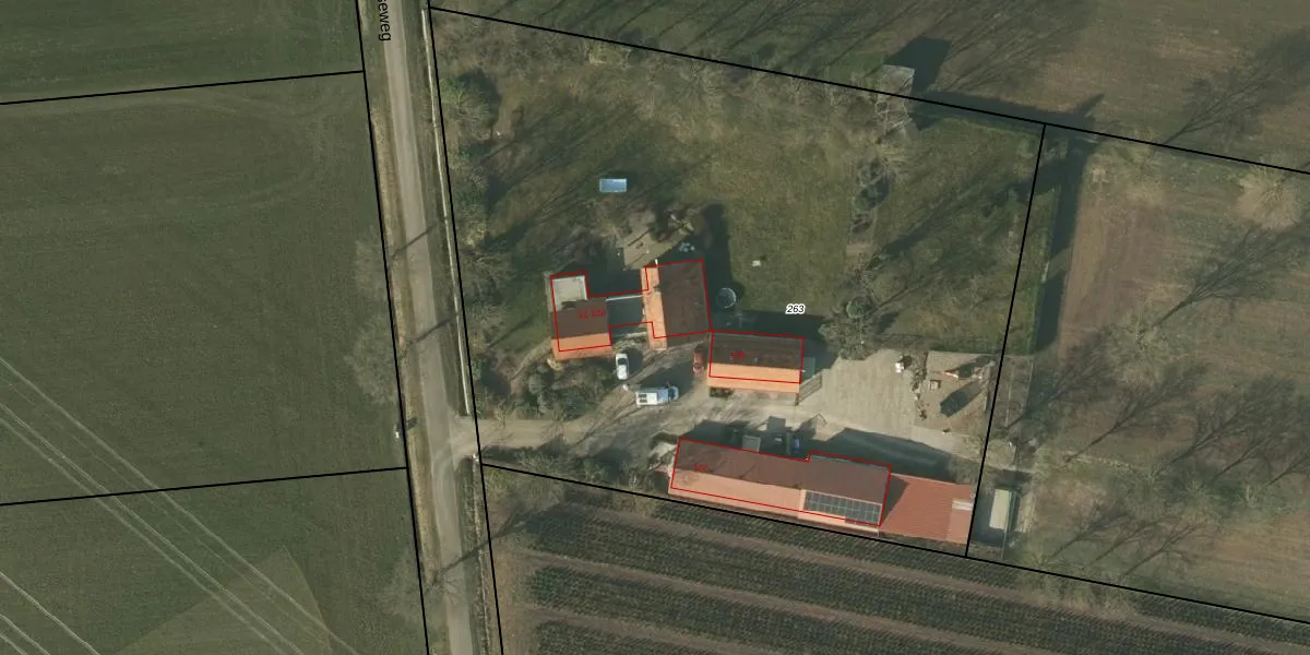 Het adres is gelegen op perceel 263 in de sectie N en de kadastrale gemeente Nederweert. De kadastrale aanduiding is aldus NDW00-N-263. Het perceel is 5810 m² groot. Dat is kleiner dan de gemiddelde perceeloppervlakte in Nederweert, dat op 7177,86 m² ligt. De grootste perceeloppervlakte in de kadastrale gemeente is 3,07 km². De kleinste oppervlakte bedraagt 0 m². Er zijn 4 adressen aanwezig op het perceel. In de Basisregistratie Kadaster (BRK) werden de grenzen van het perceel geregistreerd op 14-09-2006.