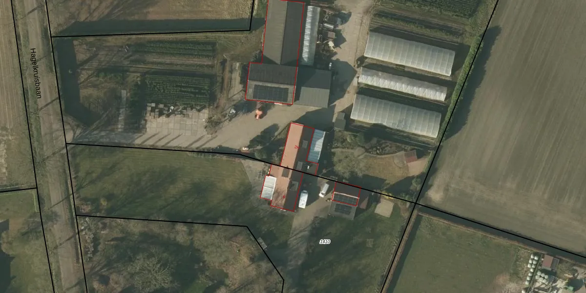 Het perceel waarop Hagelkruisbaan 2-H staat heeft een oppervlakte van 1,3 ha. Dit is een zeer groot perceel. De perceeloppervlakte wordt geregistreerd door het Kadaster. Gedetailleerde informatie over de maten van dit perceel kunt u vinden in het rapport Kadastrale kaart met maatvoering van Hagelkruisbaan 2-H.
