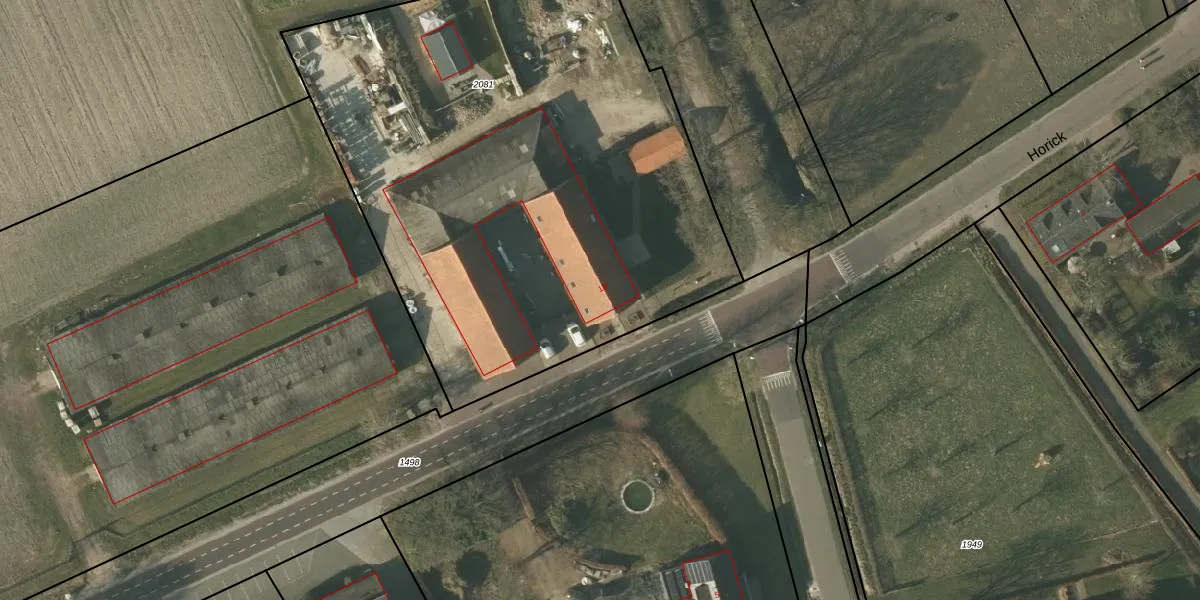 Het perceel waarop Horick 1-B staat heeft een oppervlakte van 3395 m². Dit is een zeer groot perceel. De perceeloppervlakte wordt geregistreerd door het Kadaster. Gedetailleerde informatie over de maten van dit perceel kunt u vinden in het rapport Kadastrale kaart met maatvoering van Horick 1-B.