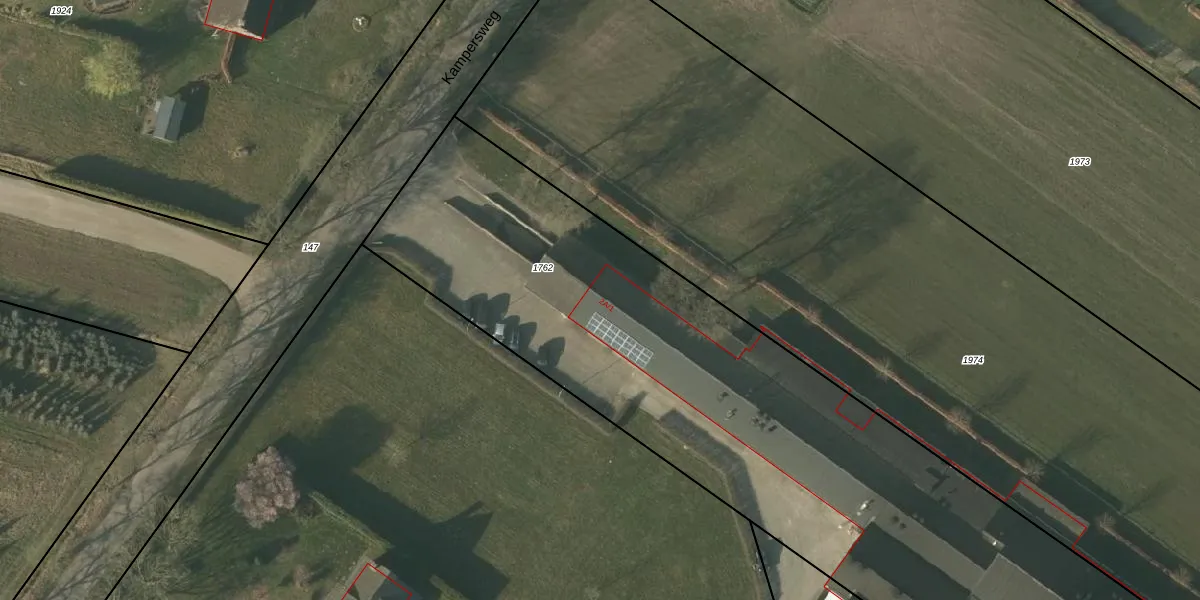 Het perceel waarop Kampersweg 2-A-1 staat heeft een oppervlakte van 4540 m². Dit is een zeer groot perceel. De perceeloppervlakte wordt geregistreerd door het Kadaster. Gedetailleerde informatie over de maten van dit perceel kunt u vinden in het rapport Kadastrale kaart met maatvoering van Kampersweg 2-A-1.