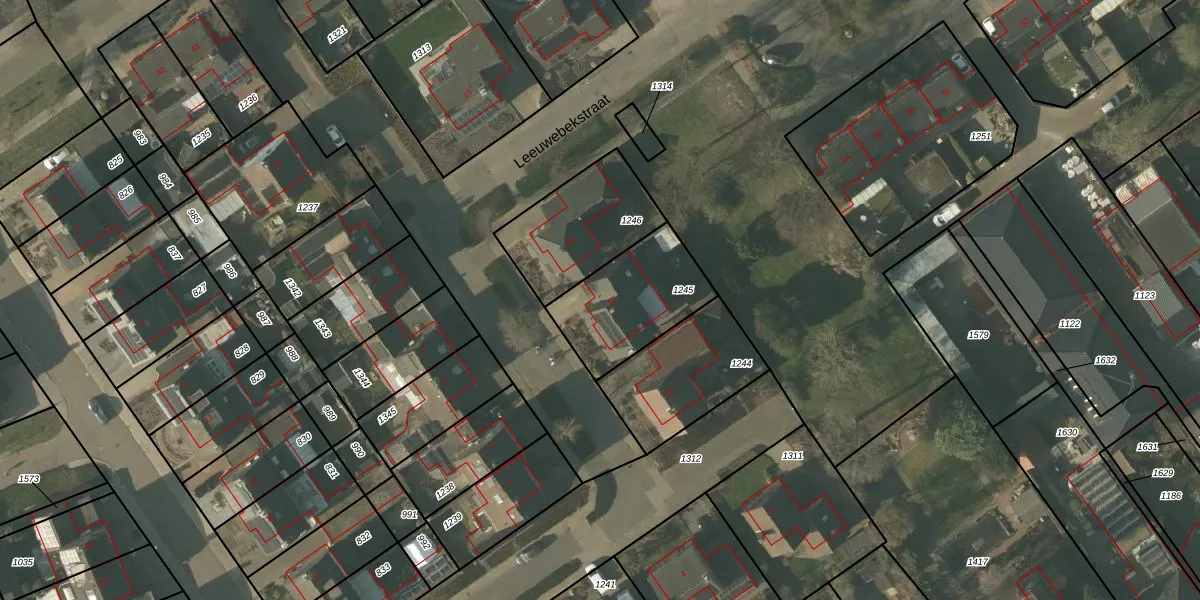 Het perceel waarop Leeuwebekstraat 12 staat heeft een oppervlakte van 375 m². Dit is een groot perceel. De perceeloppervlakte wordt geregistreerd door het Kadaster. Gedetailleerde informatie over de maten van dit perceel kunt u vinden in het rapport Kadastrale kaart met maatvoering van Leeuwebekstraat 12.