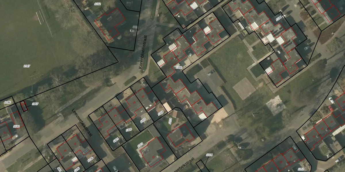Het perceel waarop Leeuwebekstraat 29 staat heeft een oppervlakte van 1505 m². Dit is een zeer groot perceel. De perceeloppervlakte wordt geregistreerd door het Kadaster. Gedetailleerde informatie over de maten van dit perceel kunt u vinden in het rapport Kadastrale kaart met maatvoering van Leeuwebekstraat 29.