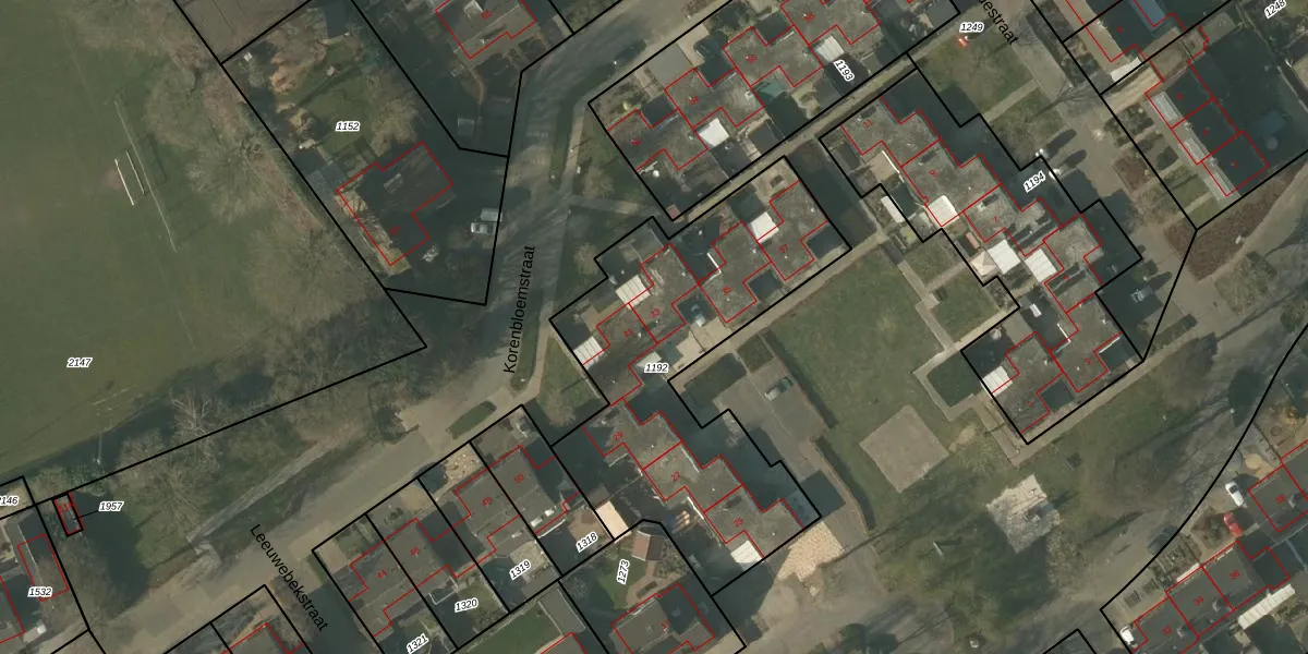 Het perceel waarop Leeuwebekstraat 33 staat heeft een oppervlakte van 1505 m². Dit is een zeer groot perceel. De perceeloppervlakte wordt geregistreerd door het Kadaster. Gedetailleerde informatie over de maten van dit perceel kunt u vinden in het rapport Kadastrale kaart met maatvoering van Leeuwebekstraat 33.