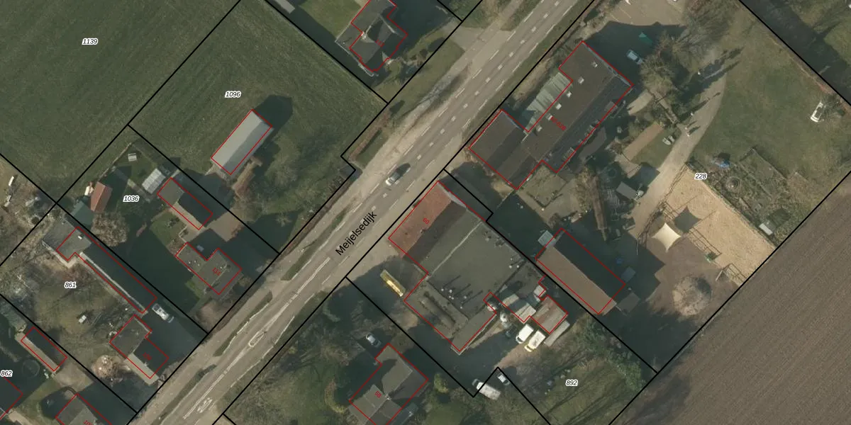 Het perceel waarop Meijelsedijk 60 staat heeft een oppervlakte van 2090 m². Dit is een zeer groot perceel. De perceeloppervlakte wordt geregistreerd door het Kadaster. Gedetailleerde informatie over de maten van dit perceel kunt u vinden in het rapport Kadastrale kaart met maatvoering van Meijelsedijk 60.