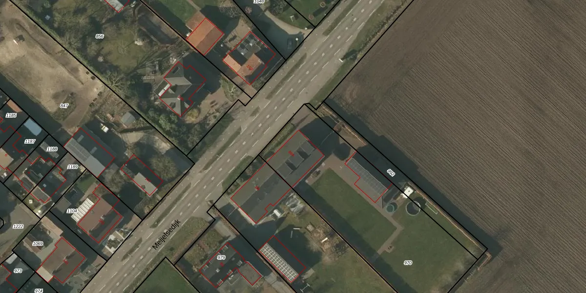 Het perceel waarop Meijelsedijk 88-A staat heeft een oppervlakte van 2015 m². Dit is een zeer groot perceel. De perceeloppervlakte wordt geregistreerd door het Kadaster. Gedetailleerde informatie over de maten van dit perceel kunt u vinden in het rapport Kadastrale kaart met maatvoering van Meijelsedijk 88-A.