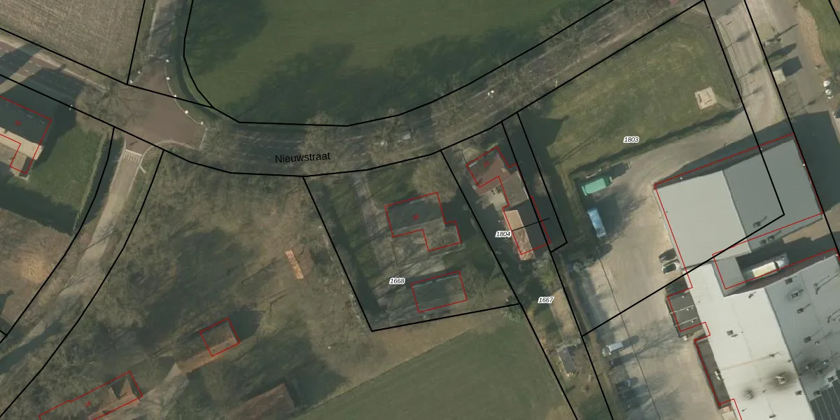 Het perceel waarop Nieuwstraat 20 staat heeft een oppervlakte van 1324 m². Dit is een zeer groot perceel. De perceeloppervlakte wordt geregistreerd door het Kadaster. Gedetailleerde informatie over de maten van dit perceel kunt u vinden in het rapport Kadastrale kaart met maatvoering van Nieuwstraat 20.