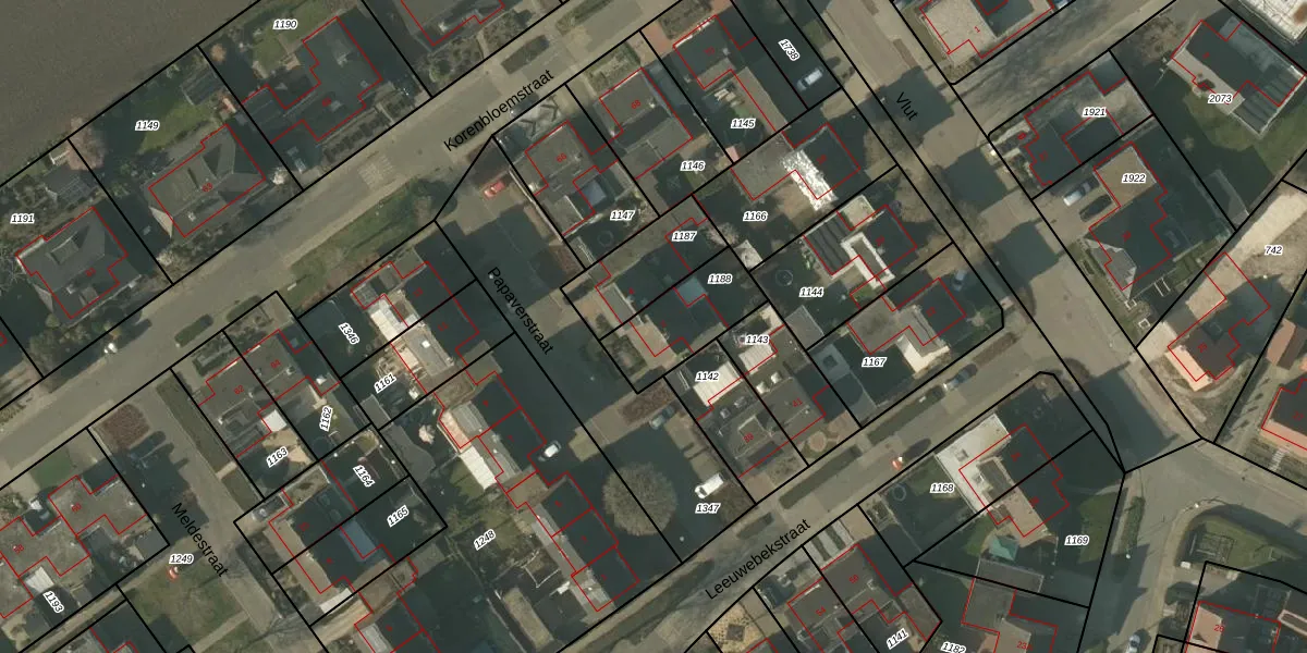 Gebruik de zoekbalk of klik op een perceel voor informatie over de adressen binnen dit perceel.
