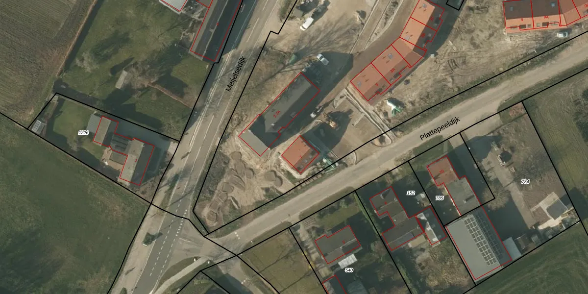Het perceel waarop Plattepeeldijk 1 staat heeft een oppervlakte van 1,7 ha. Dit is een zeer groot perceel. De perceeloppervlakte wordt geregistreerd door het Kadaster. Gedetailleerde informatie over de maten van dit perceel kunt u vinden in het rapport Kadastrale kaart met maatvoering van Plattepeeldijk 1.
