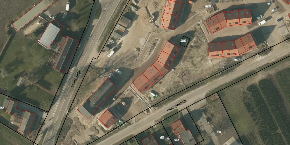 Het perceel waarop Plattepeeldijk 3-A staat heeft een oppervlakte van 1,7 ha. Dit is een zeer groot perceel. De perceeloppervlakte wordt geregistreerd door het Kadaster. Gedetailleerde informatie over de maten van dit perceel kunt u vinden in het rapport Kadastrale kaart met maatvoering van Plattepeeldijk 3-A.