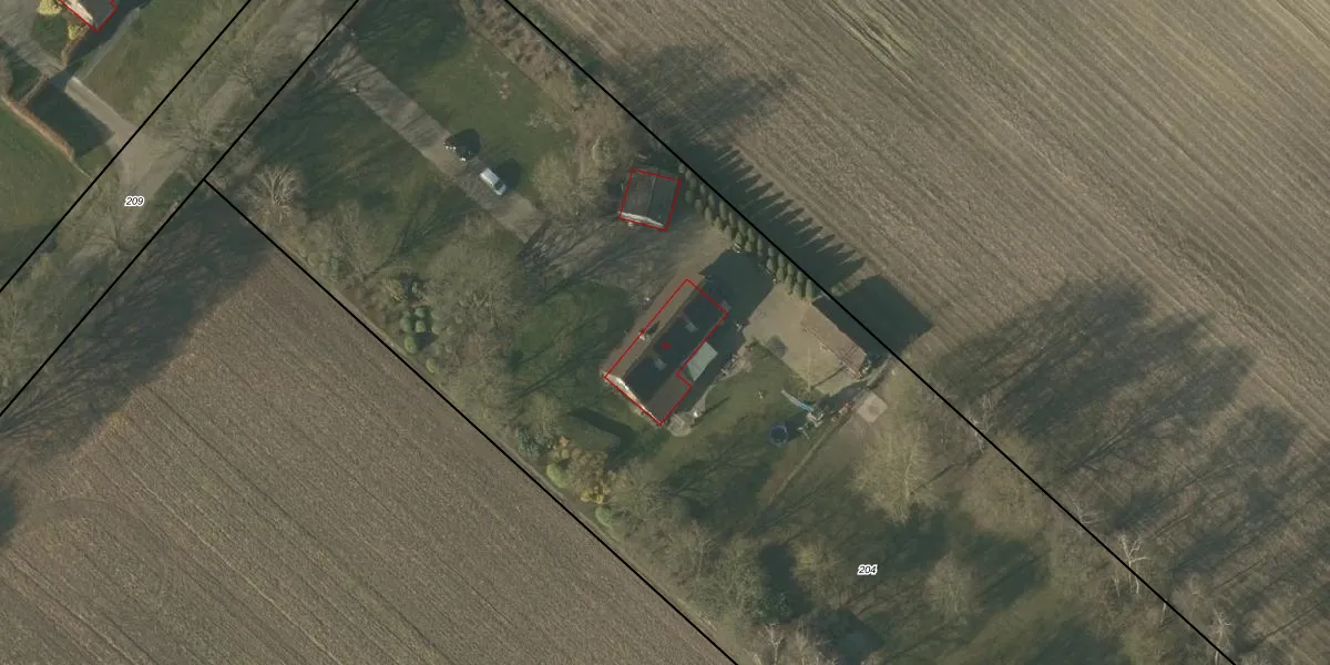 Het perceel waarop het adres ligt is NDW00-O-204. De afkorting 'NDW00' staat voor kadastrale gemeente Nederweert. Het perceel is met 9920 m² relatief groot. Het gemiddelde ligt in de kadastrale gemeente Nederweert op 7177,86 m². De grootste perceeloppervlakte in de kadastrale gemeente is 3,07 km². De kleinste oppervlakte bedraagt 0 m². Dit is het enige adres dat aanwezig is op het perceel. De huidige grenzen van het perceel zijn digitaal in de Basisregistratie Kadaster (BRK) geregistreerd op 04-08-2006.