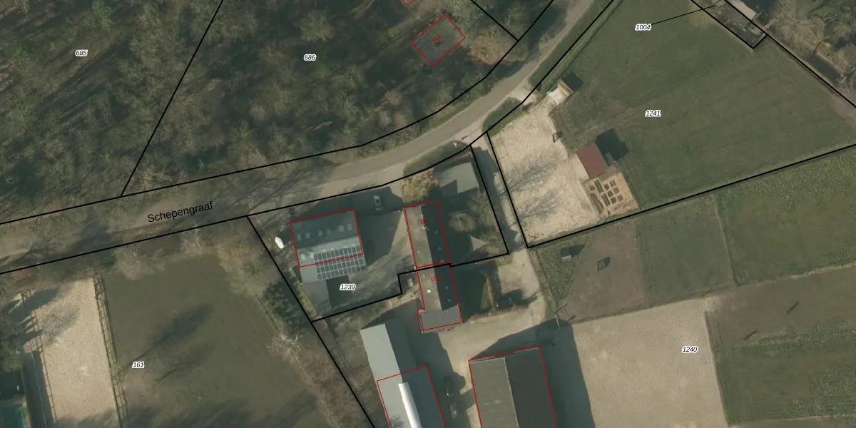 Het perceel waarop Schepengraaf 10 staat heeft een oppervlakte van 1295 m². Dit is een zeer groot perceel. De perceeloppervlakte wordt geregistreerd door het Kadaster. Gedetailleerde informatie over de maten van dit perceel kunt u vinden in het rapport Kadastrale kaart met maatvoering van Schepengraaf 10.