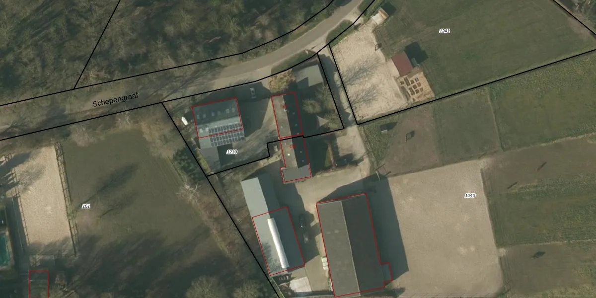 Het perceel waarop Schepengraaf 10-A staat heeft een oppervlakte van 1,1 ha. Dit is een zeer groot perceel. De perceeloppervlakte wordt geregistreerd door het Kadaster. Gedetailleerde informatie over de maten van dit perceel kunt u vinden in het rapport Kadastrale kaart met maatvoering van Schepengraaf 10-A.