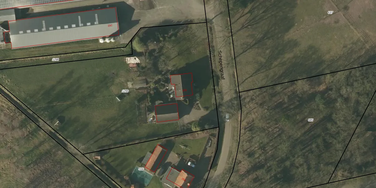 Het perceel waarop Schepengraaf 25-B staat heeft een oppervlakte van 5175 m². Dit is een zeer groot perceel. De perceeloppervlakte wordt geregistreerd door het Kadaster. Gedetailleerde informatie over de maten van dit perceel kunt u vinden in het rapport Kadastrale kaart met maatvoering van Schepengraaf 25-B.