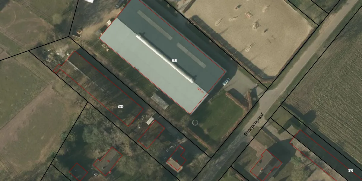 Het perceel waarop Schepengraaf 31-A staat heeft een oppervlakte van 5720 m². Dit is een zeer groot perceel. De perceeloppervlakte wordt geregistreerd door het Kadaster. Gedetailleerde informatie over de maten van dit perceel kunt u vinden in het rapport Kadastrale kaart met maatvoering van Schepengraaf 31-A.