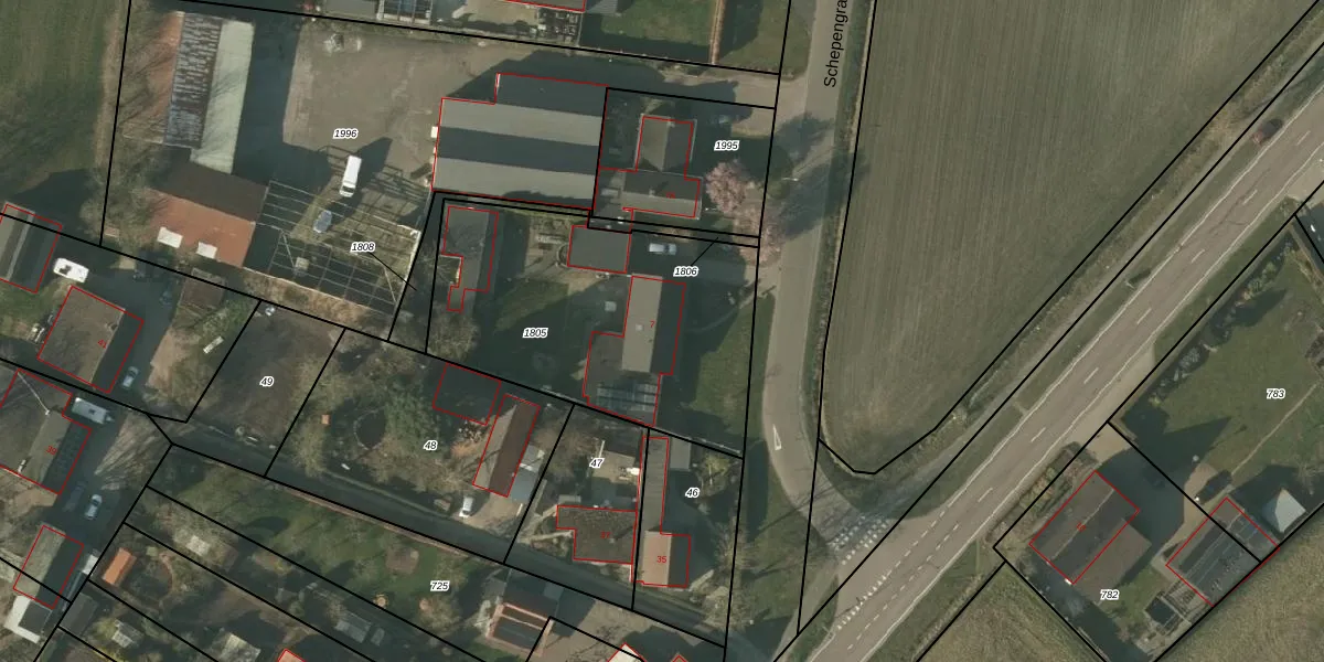 Het perceel waarop Schepengraaf 7 staat heeft een oppervlakte van 1362 m². Dit is een zeer groot perceel. De perceeloppervlakte wordt geregistreerd door het Kadaster. Gedetailleerde informatie over de maten van dit perceel kunt u vinden in het rapport Kadastrale kaart met maatvoering van Schepengraaf 7.