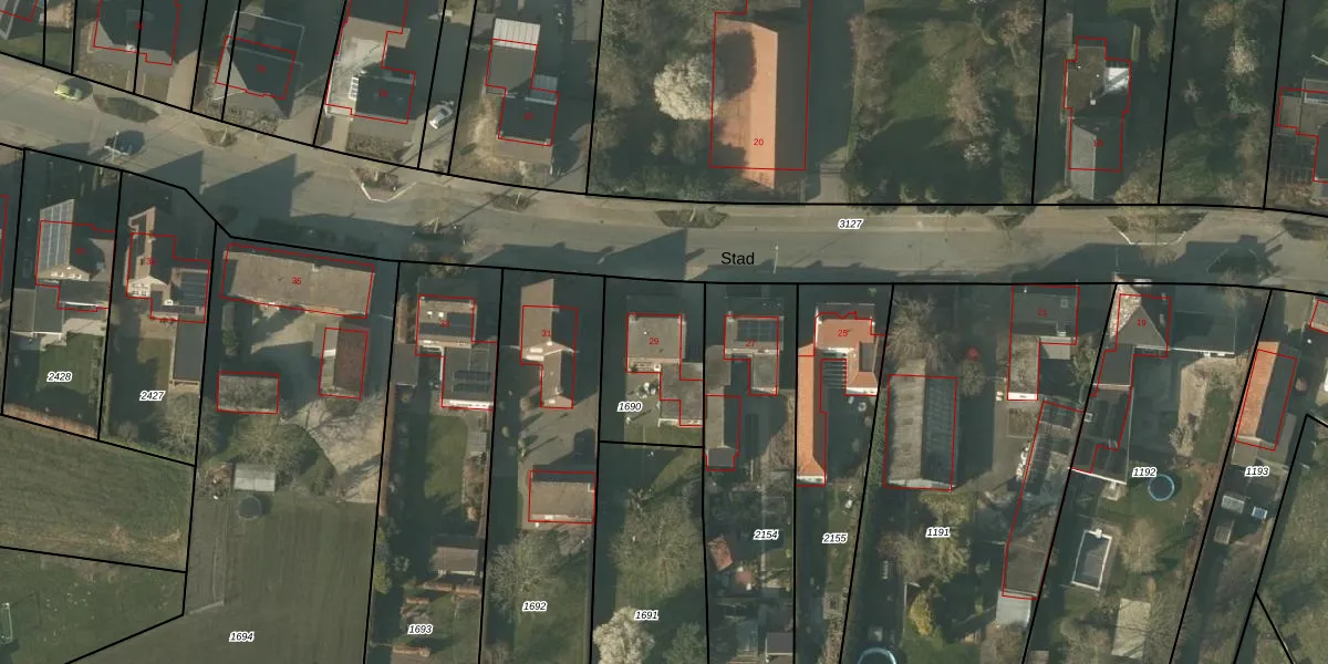 Het perceel waarop Stad 29 staat heeft een oppervlakte van 390 m². Dit is een groot perceel. De perceeloppervlakte wordt geregistreerd door het Kadaster. Gedetailleerde informatie over de maten van dit perceel kunt u vinden in het rapport Kadastrale kaart met maatvoering van Stad 29.