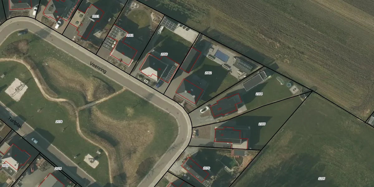 Het perceel waarop Veenring 16 staat heeft een oppervlakte van 1110 m². Dit is een zeer groot perceel. De perceeloppervlakte wordt geregistreerd door het Kadaster. Gedetailleerde informatie over de maten van dit perceel kunt u vinden in het rapport Kadastrale kaart met maatvoering van Veenring 16.