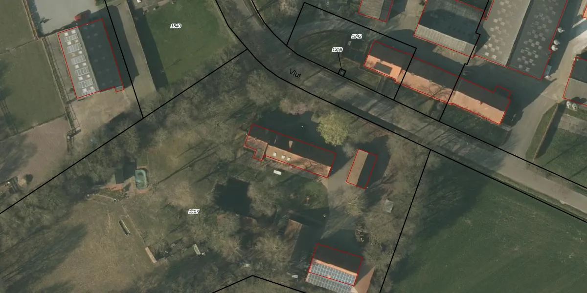 Het perceel waarop Vlut 2 staat heeft een oppervlakte van 9765 m². Dit is een zeer groot perceel. De perceeloppervlakte wordt geregistreerd door het Kadaster. Gedetailleerde informatie over de maten van dit perceel kunt u vinden in het rapport Kadastrale kaart met maatvoering van Vlut 2.