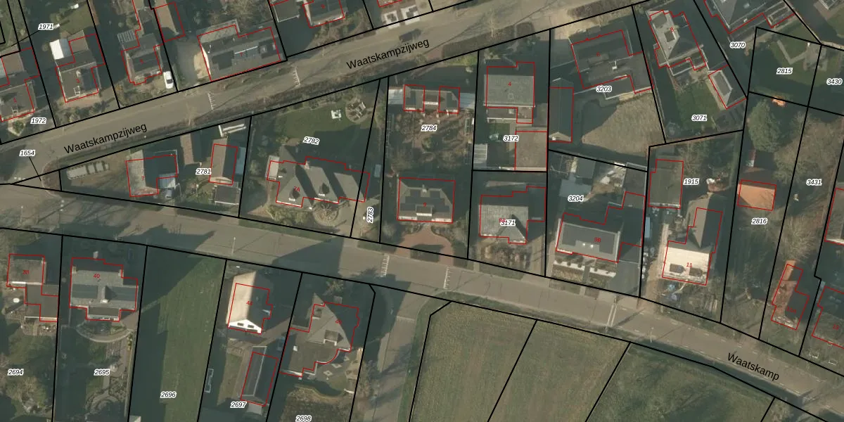Waatskamp 9 is gelegen op kadastraal perceel NDW00L2784. Deze kadastrale aanduiding is uniek en wordt gebruikt door het Kadaster om eigendomsrechten en andere zakelijke rechten vast te leggen. Het perceel maakt onderdeel uit van de kadastrale gemeente Nederweert.