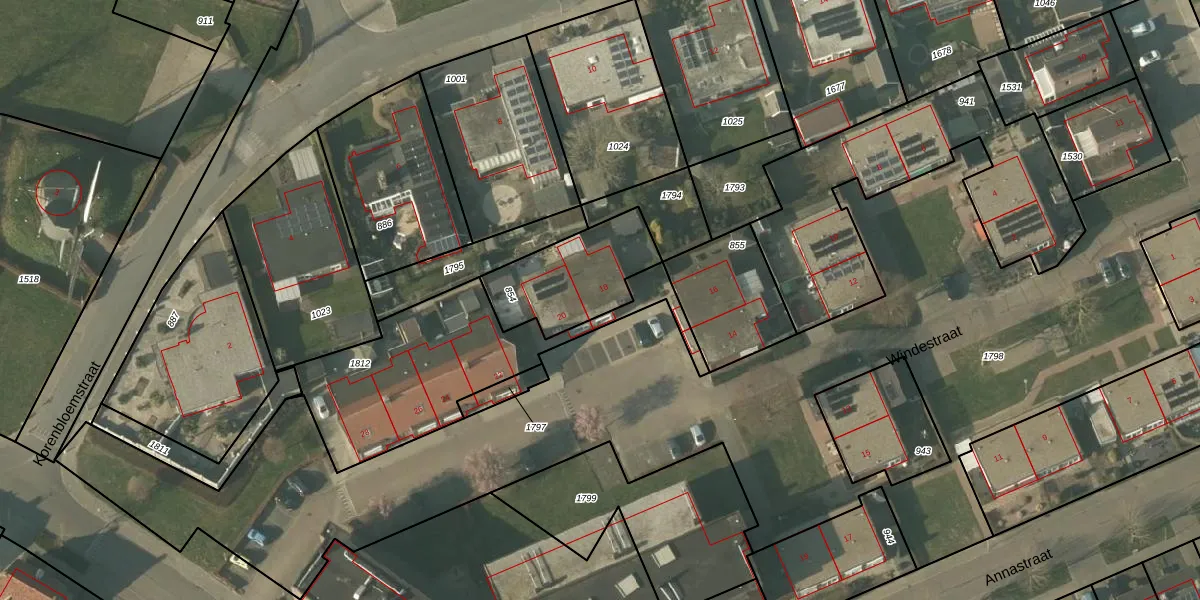 Het perceel waarop Windestraat 18 staat heeft een oppervlakte van 354 m². Dit is een groot perceel. De perceeloppervlakte wordt geregistreerd door het Kadaster. Gedetailleerde informatie over de maten van dit perceel kunt u vinden in het rapport Kadastrale kaart met maatvoering van Windestraat 18.