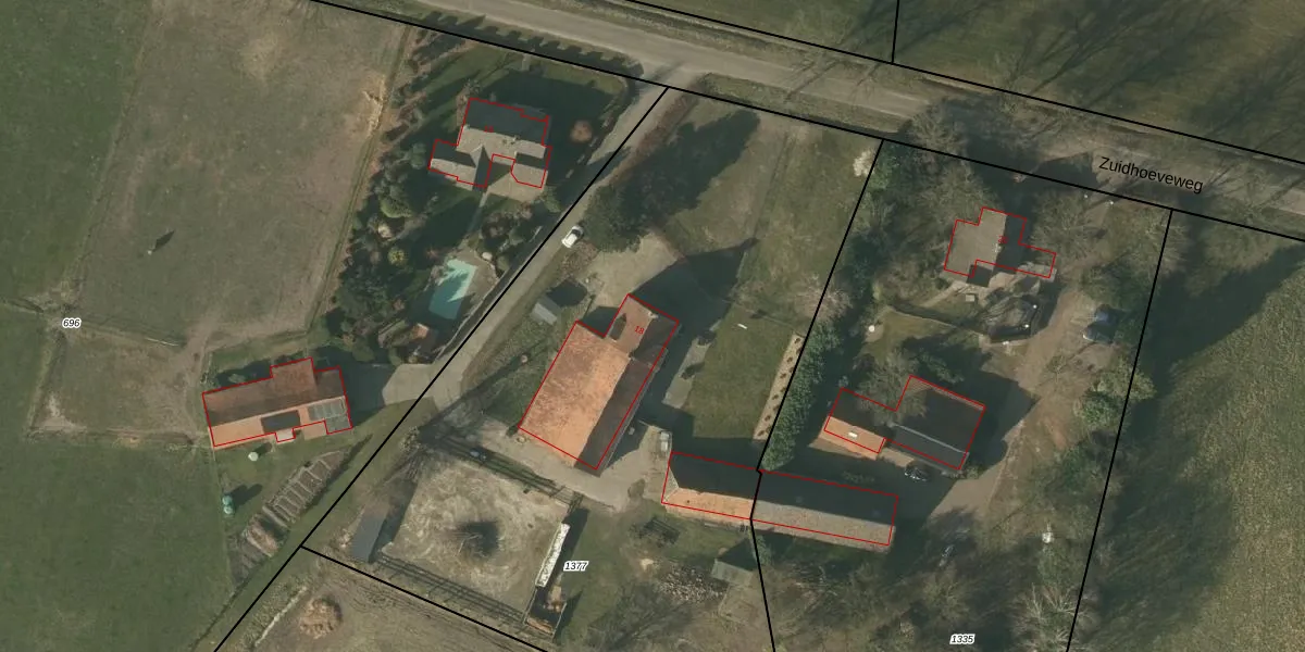 Zuidhoeveweg 18 is gelegen op kadastraal perceel NDW00M1377. Deze kadastrale aanduiding is uniek en wordt gebruikt door het Kadaster om eigendomsrechten en andere zakelijke rechten vast te leggen. Het perceel maakt onderdeel uit van de kadastrale gemeente Nederweert.