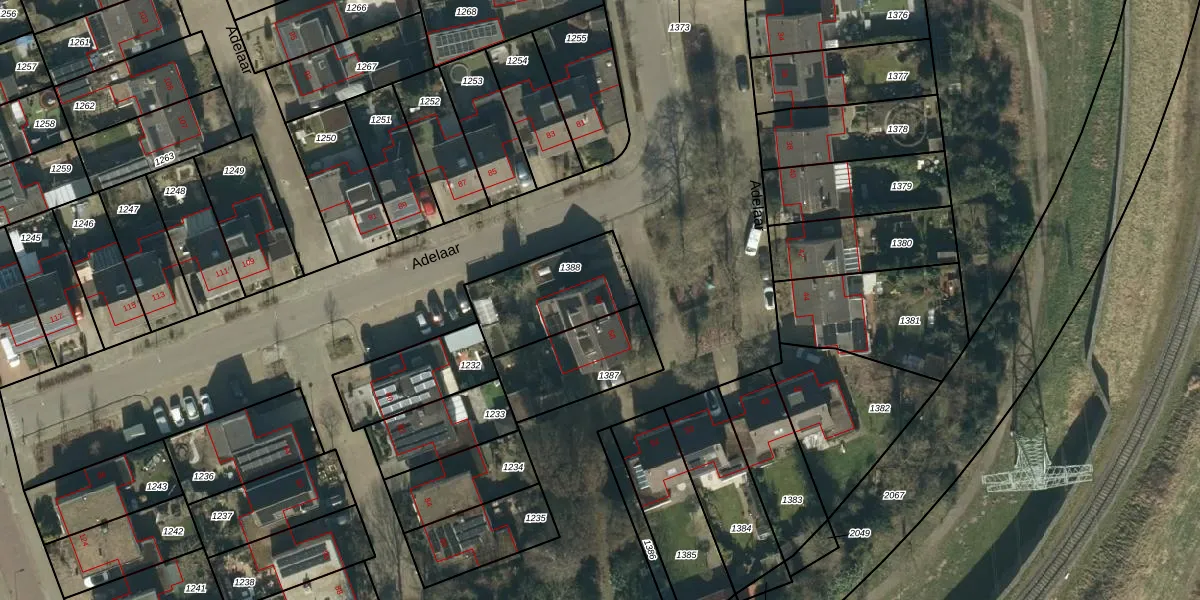 Het perceel waarop Adelaar 60 staat heeft een oppervlakte van 336 m². Dit is een groot perceel. De perceeloppervlakte wordt geregistreerd door het Kadaster. Gedetailleerde informatie over de maten van dit perceel kunt u vinden in het rapport Kadastrale kaart met maatvoering van Adelaar 60.
