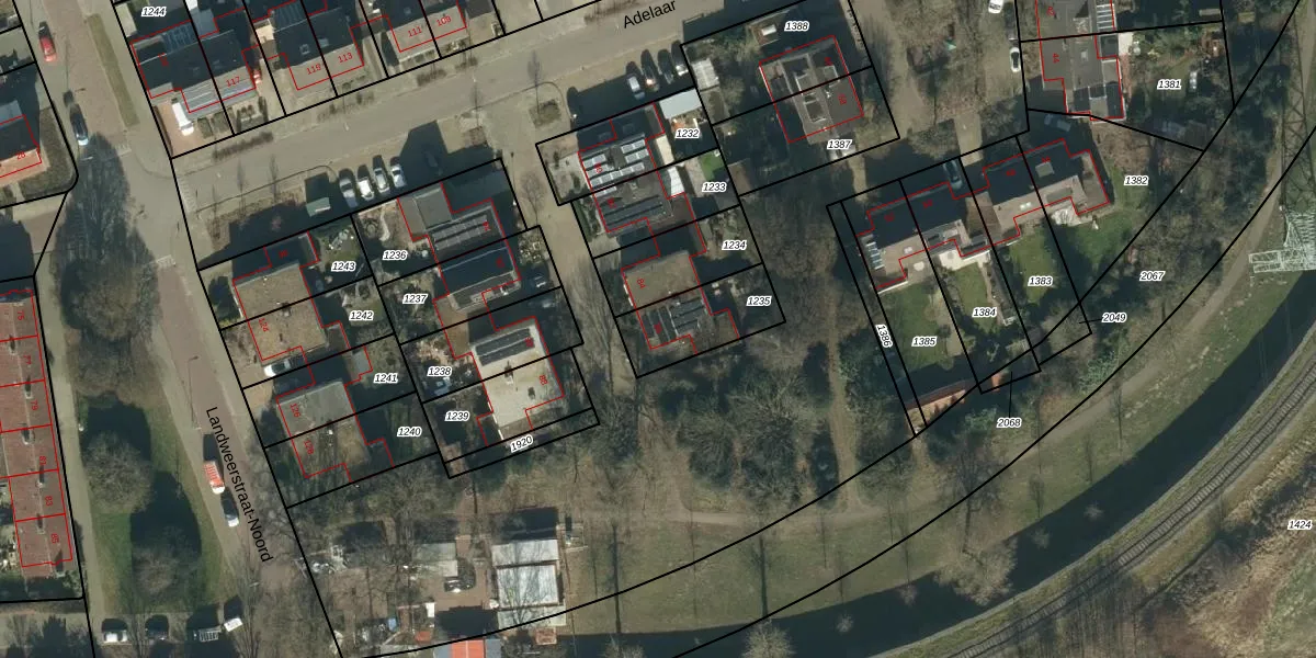Gebruik de zoekbalk of klik op een perceel voor informatie over de adressen binnen dit perceel.