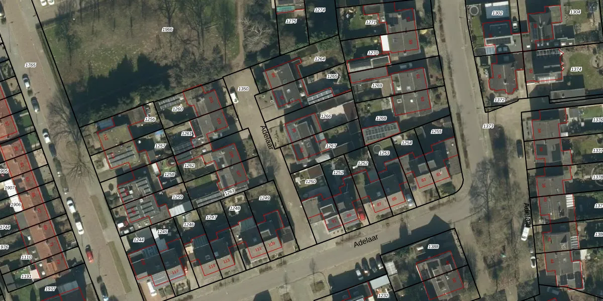 Het perceel waarop Adelaar 93 staat heeft een oppervlakte van 258 m². Dit is een middelgroot perceel. De perceeloppervlakte wordt geregistreerd door het Kadaster. Gedetailleerde informatie over de maten van dit perceel kunt u vinden in het rapport Kadastrale kaart met maatvoering van Adelaar 93.
