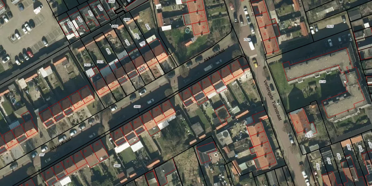 Het perceel waarop Akkerstraat 12 staat heeft een oppervlakte van 8062 m². Dit is een zeer groot perceel. De perceeloppervlakte wordt geregistreerd door het Kadaster. Gedetailleerde informatie over de maten van dit perceel kunt u vinden in het rapport Kadastrale kaart met maatvoering van Akkerstraat 12.