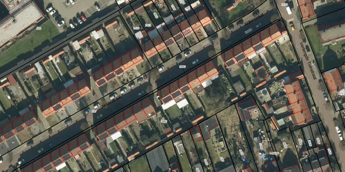Het perceel waarop Akkerstraat 22 staat heeft een oppervlakte van 8062 m². Dit is een zeer groot perceel. De perceeloppervlakte wordt geregistreerd door het Kadaster. Gedetailleerde informatie over de maten van dit perceel kunt u vinden in het rapport Kadastrale kaart met maatvoering van Akkerstraat 22.