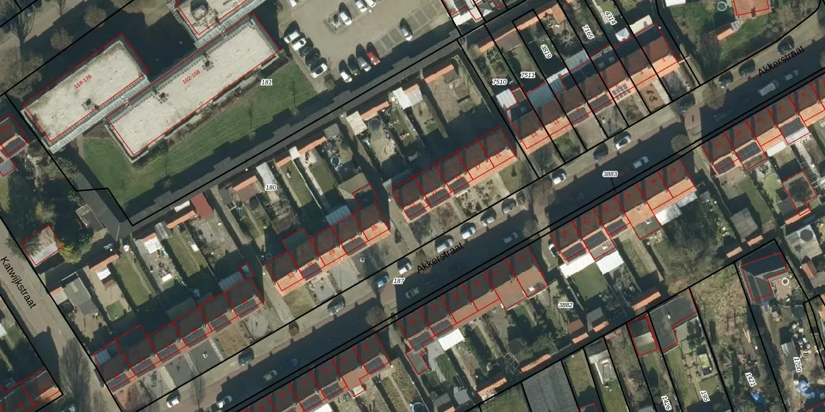 Het perceel waarop Akkerstraat 23 staat heeft een oppervlakte van 5450 m². Dit is een zeer groot perceel. De perceeloppervlakte wordt geregistreerd door het Kadaster. Gedetailleerde informatie over de maten van dit perceel kunt u vinden in het rapport Kadastrale kaart met maatvoering van Akkerstraat 23.