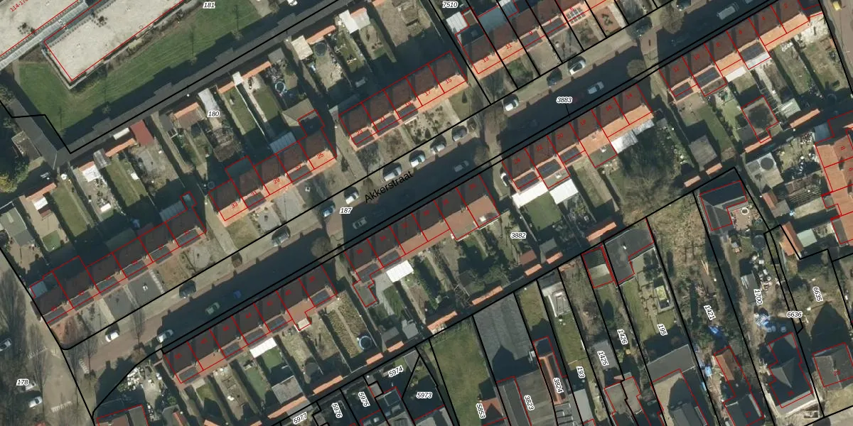 Het perceel waarop Akkerstraat 30 staat heeft een oppervlakte van 8062 m². Dit is een zeer groot perceel. De perceeloppervlakte wordt geregistreerd door het Kadaster. Gedetailleerde informatie over de maten van dit perceel kunt u vinden in het rapport Kadastrale kaart met maatvoering van Akkerstraat 30.