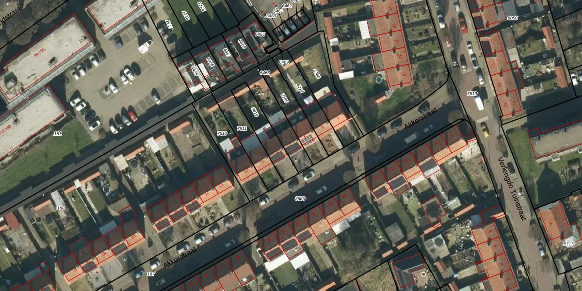 Het perceel waarop Akkerstraat 7 staat heeft een oppervlakte van 494 m². Dit is een groot perceel. De perceeloppervlakte wordt geregistreerd door het Kadaster. Gedetailleerde informatie over de maten van dit perceel kunt u vinden in het rapport Kadastrale kaart met maatvoering van Akkerstraat 7.