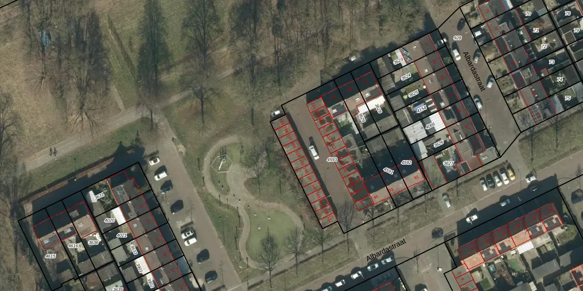 Albardastraat 155 is gelegen op kadastraal perceel OSS00L4593. Deze kadastrale aanduiding is uniek en wordt gebruikt door het Kadaster om eigendomsrechten en andere zakelijke rechten vast te leggen. Het perceel maakt onderdeel uit van de kadastrale gemeente Oss.
