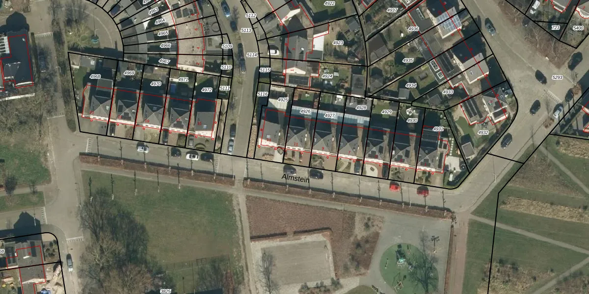 Het perceel waarop Almstein 11 staat heeft een oppervlakte van 234 m². Dit is een middelgroot perceel. De perceeloppervlakte wordt geregistreerd door het Kadaster. Gedetailleerde informatie over de maten van dit perceel kunt u vinden in het rapport Kadastrale kaart met maatvoering van Almstein 11.