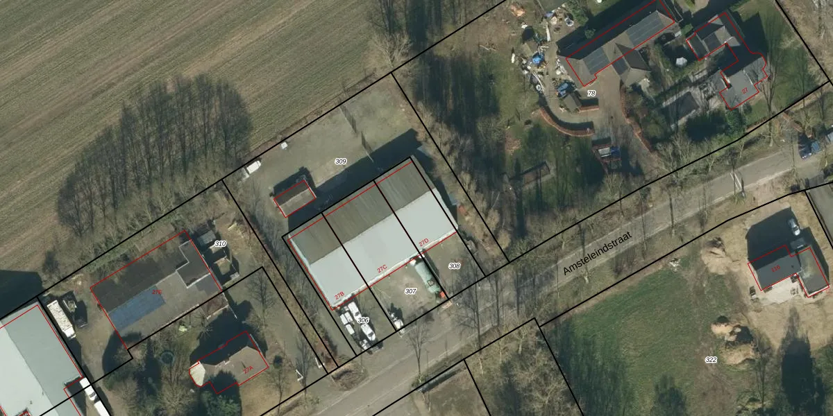 Het perceel waarop Amsteleindstraat 27-D staat heeft een oppervlakte van 353 m². Dit is een groot perceel. De perceeloppervlakte wordt geregistreerd door het Kadaster. Gedetailleerde informatie over de maten van dit perceel kunt u vinden in het rapport Kadastrale kaart met maatvoering van Amsteleindstraat 27-D.