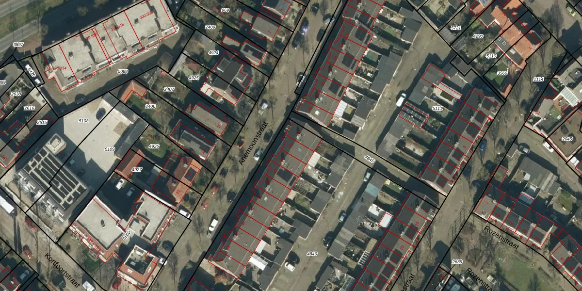 Het perceel waarop Anemoonstraat 32 staat heeft een oppervlakte van 4969 m². Dit is een zeer groot perceel. De perceeloppervlakte wordt geregistreerd door het Kadaster. Gedetailleerde informatie over de maten van dit perceel kunt u vinden in het rapport Kadastrale kaart met maatvoering van Anemoonstraat 32.