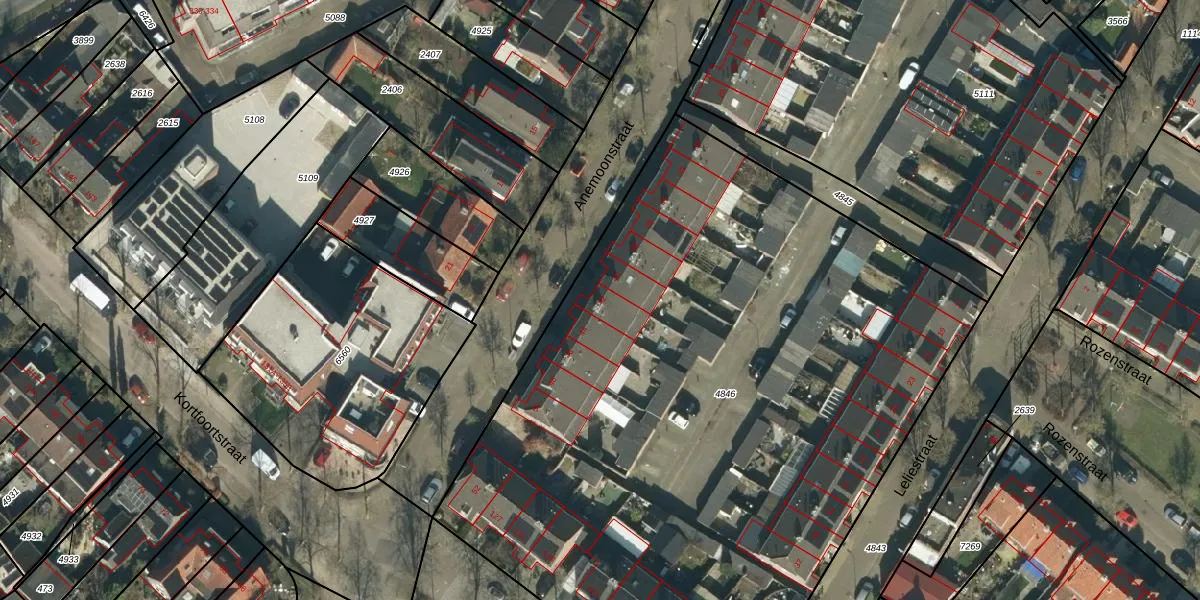 Het perceel waarop Anemoonstraat 42 staat heeft een oppervlakte van 4969 m². Dit is een zeer groot perceel. De perceeloppervlakte wordt geregistreerd door het Kadaster. Gedetailleerde informatie over de maten van dit perceel kunt u vinden in het rapport Kadastrale kaart met maatvoering van Anemoonstraat 42.