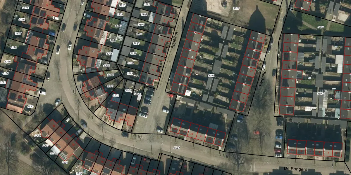 Het perceel waarop Appelhof 1 staat heeft een oppervlakte van 3151 m². Dit is een zeer groot perceel. De perceeloppervlakte wordt geregistreerd door het Kadaster. Gedetailleerde informatie over de maten van dit perceel kunt u vinden in het rapport Kadastrale kaart met maatvoering van Appelhof 1.