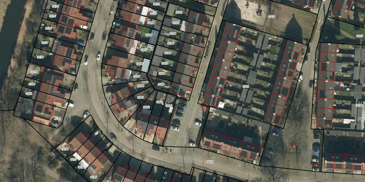 Gebruik de zoekbalk of klik op een perceel voor informatie over de adressen binnen dit perceel.
