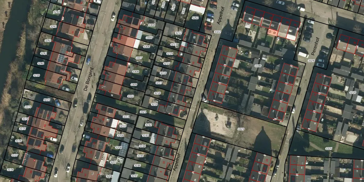 Gebruik de zoekbalk of klik op een perceel voor informatie over de adressen binnen dit perceel.