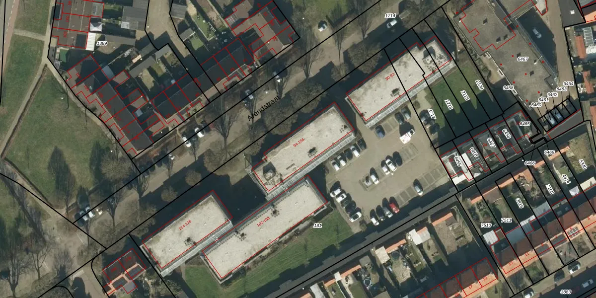 Het perceel waarop Arendstraat 126 staat heeft een oppervlakte van 4920 m². Dit is een zeer groot perceel. De perceeloppervlakte wordt geregistreerd door het Kadaster. Gedetailleerde informatie over de maten van dit perceel kunt u vinden in het rapport Kadastrale kaart met maatvoering van Arendstraat 126.
