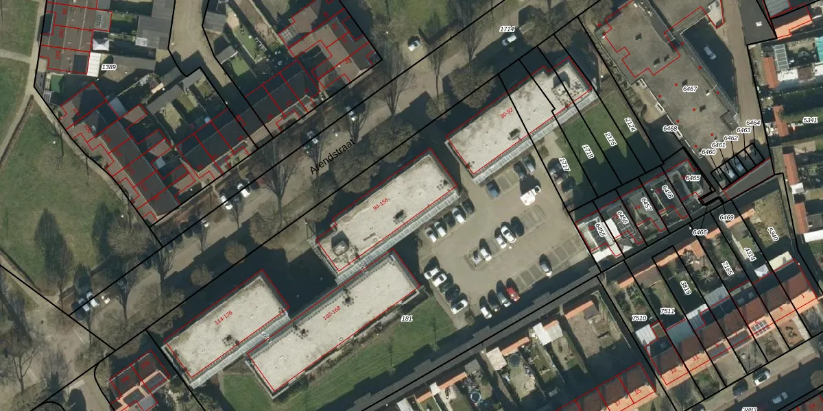 Het perceel waarop Arendstraat 152 staat heeft een oppervlakte van 4920 m². Dit is een zeer groot perceel. De perceeloppervlakte wordt geregistreerd door het Kadaster. Gedetailleerde informatie over de maten van dit perceel kunt u vinden in het rapport Kadastrale kaart met maatvoering van Arendstraat 152.