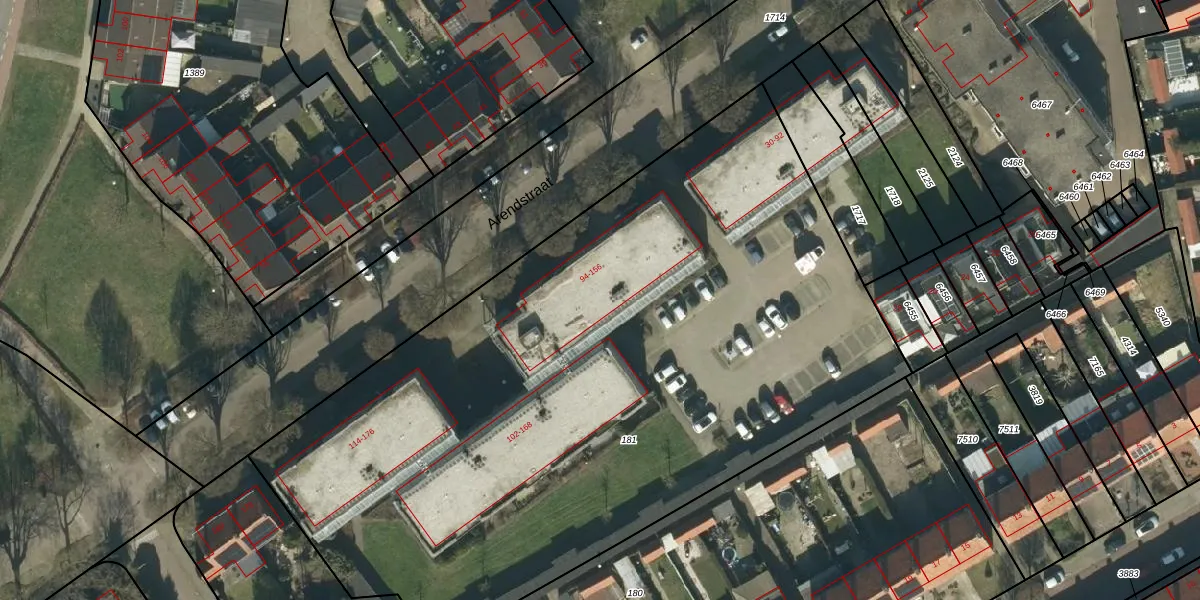 Arendstraat 154 is gelegen op kadastraal perceel OSS00E181. Deze kadastrale aanduiding is uniek en wordt gebruikt door het Kadaster om eigendomsrechten en andere zakelijke rechten vast te leggen. Het perceel maakt onderdeel uit van de kadastrale gemeente Oss.
