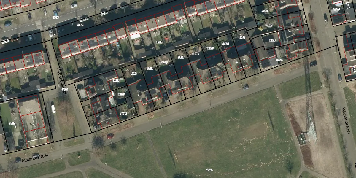 Atalantastraat 13 is gelegen op kadastraal perceel OSS00K3917. Deze kadastrale aanduiding is uniek en wordt gebruikt door het Kadaster om eigendomsrechten en andere zakelijke rechten vast te leggen. Het perceel maakt onderdeel uit van de kadastrale gemeente Oss.