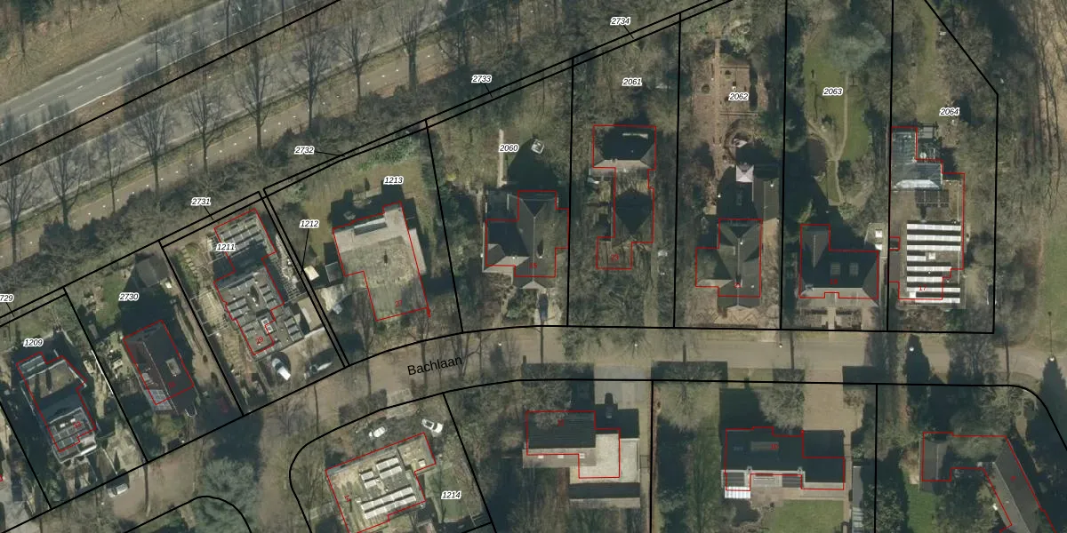 Het perceel waarop Bachlaan 25 staat heeft een oppervlakte van 1035 m². Dit is een zeer groot perceel. De perceeloppervlakte wordt geregistreerd door het Kadaster. Gedetailleerde informatie over de maten van dit perceel kunt u vinden in het rapport Kadastrale kaart met maatvoering van Bachlaan 25.