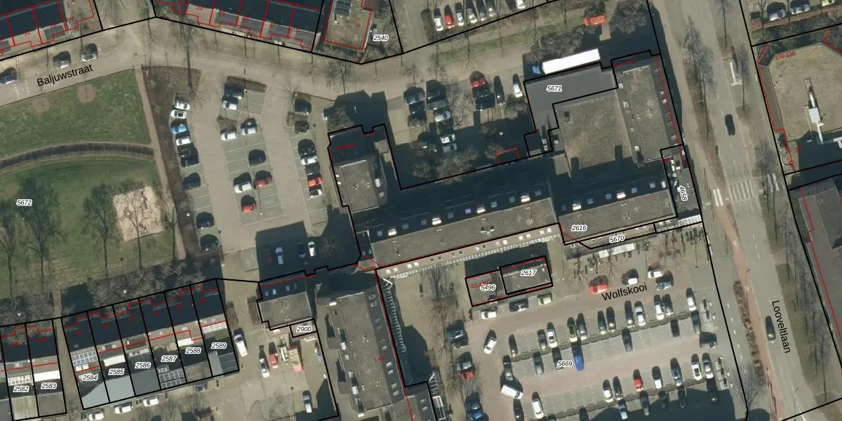 Het perceel waarop Baljuwstraat 44 staat heeft een oppervlakte van 3792 m². Dit is een zeer groot perceel. De perceeloppervlakte wordt geregistreerd door het Kadaster. Gedetailleerde informatie over de maten van dit perceel kunt u vinden in het rapport Kadastrale kaart met maatvoering van Baljuwstraat 44.