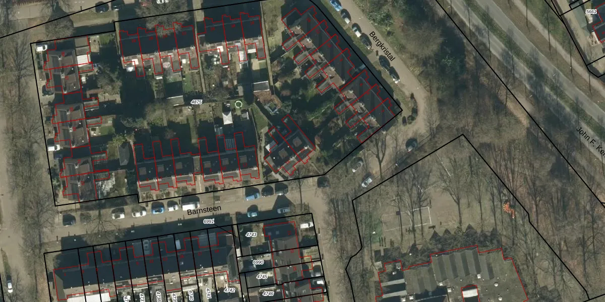 Het perceel waarop Barnsteen 16 staat heeft een oppervlakte van 6159 m². Dit is een zeer groot perceel. De perceeloppervlakte wordt geregistreerd door het Kadaster. Gedetailleerde informatie over de maten van dit perceel kunt u vinden in het rapport Kadastrale kaart met maatvoering van Barnsteen 16.