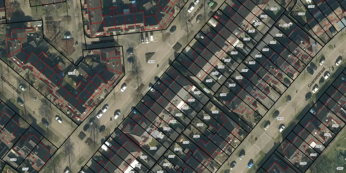 Het perceel waarop Basaltstraat 26 staat heeft een oppervlakte van 164 m². Dit is een middelgroot perceel. De perceeloppervlakte wordt geregistreerd door het Kadaster. Gedetailleerde informatie over de maten van dit perceel kunt u vinden in het rapport Kadastrale kaart met maatvoering van Basaltstraat 26.