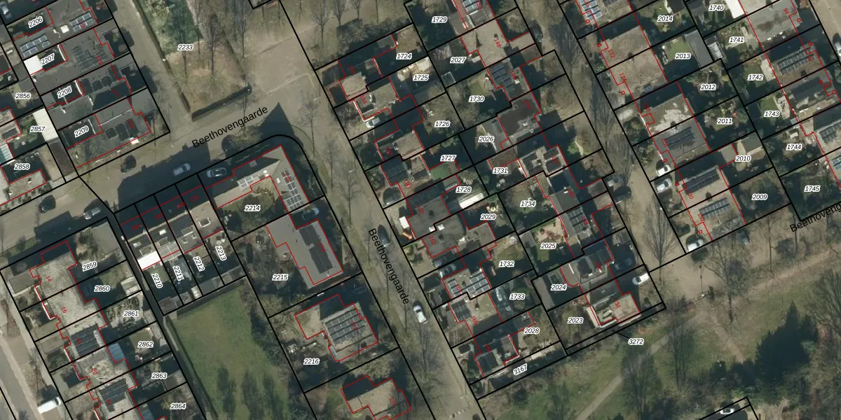 Gebruik de zoekbalk of klik op een perceel voor informatie over de adressen binnen dit perceel.